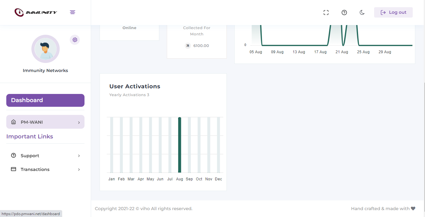 PDO portal will allow you to view the data of PM-WANI users. PDOs can view the total number of end users who joined and payments collected from the end users. This portal will be only accessed by registered PDO of Immunity Networks & Technologies Pvt Ltd. PDOs can access this portal from any internet connection using any device for example (Mobiles, Computers, Tablets, etc.) By validating their registered email ID and password.
